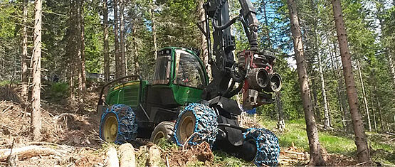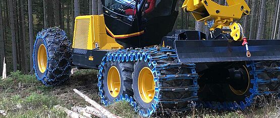 pewag acționează ca ofertant de soluții complete de senile și lanțuri de tracțiune pentru utilaje forestiere și sisteme de lanțuri pentru tracțiunea și transportul bunurilor voluminoase în pădure.
