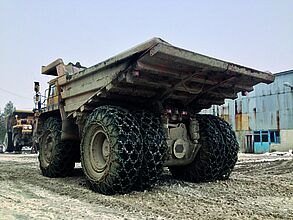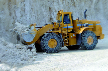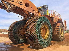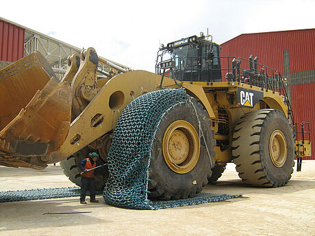 Utilajele miniere, cum ar fi încărcătoarele pe roți (WA 1200, CAT 994, LT 2350) sau camioanele basculante (Cat 797, HD 930) devin din ce în ce mai mari și mai grele, la fel ca și anvelopele lor (70/70-57; 59/80-63). În 1992, pewag a fost pionier în montarea pentru prima dată a anvelopelor pe un CAT 994, precum și în 2003 în montarea celei mai mari anvelope din lume la acea vreme, cu dimensiunea 60/80-57. Pewag a stabilit standarde pentru astfel de produse prin lansarea pe piață a noii generații de lanțuri de protecție a anvelopelor de 23 mm, foarte durabile, în 2006, precum și prin montarea acestui lanț în 2007 pe cel mai mare încărcător pe roți din lume, LT 2350 (70/70-57).